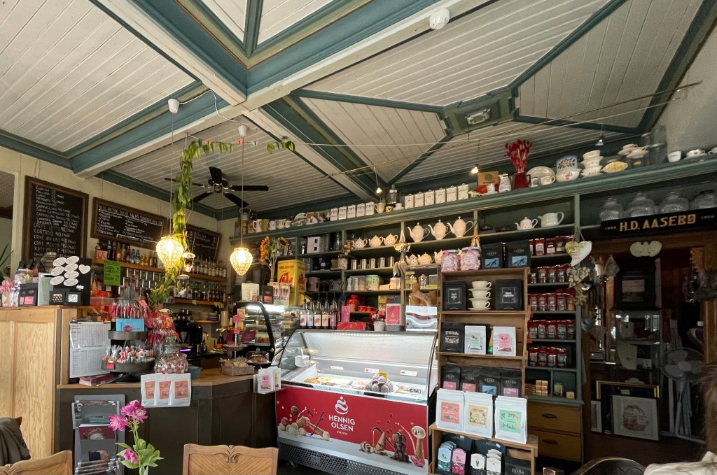 In Nordfjordeid gibt’s Frühstück in einem coolen Café mit exzellentem Kaffee. Die Norweger stehen total auf Kaffee und man bekommt fast überall richtig guten und das in vielen Variationen, auch Cortado oder hier sogar „Swiss Cappuccino“ mit Kondensmilch und Schokolade😋