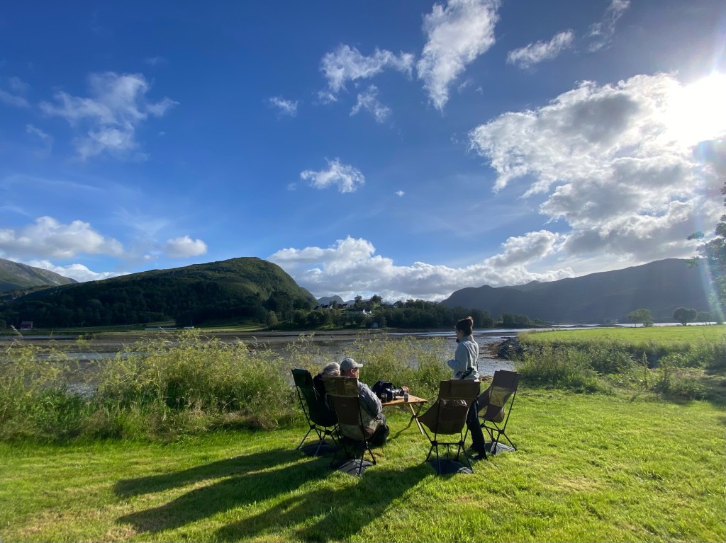 Lange sitzen wir noch in der ☀️ Sebi spielt Gitarre 🎶 ich blogge 📝 und Andy fotografiert die zahlreichen Vögel📸