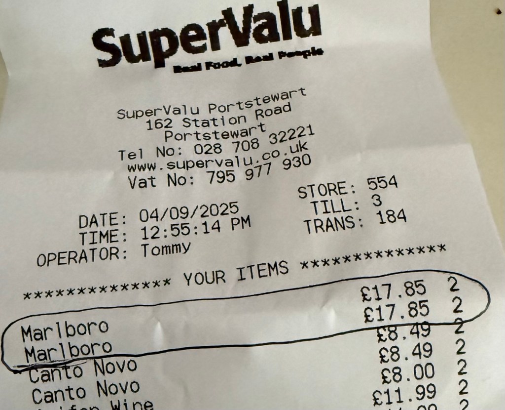 Wir fahren nochmal durch Bushmills und gehen im Supervalu einkaufen. Zigaretten sind hier uuuunglaublich teuer (17.85 £ = 20 CHF)!