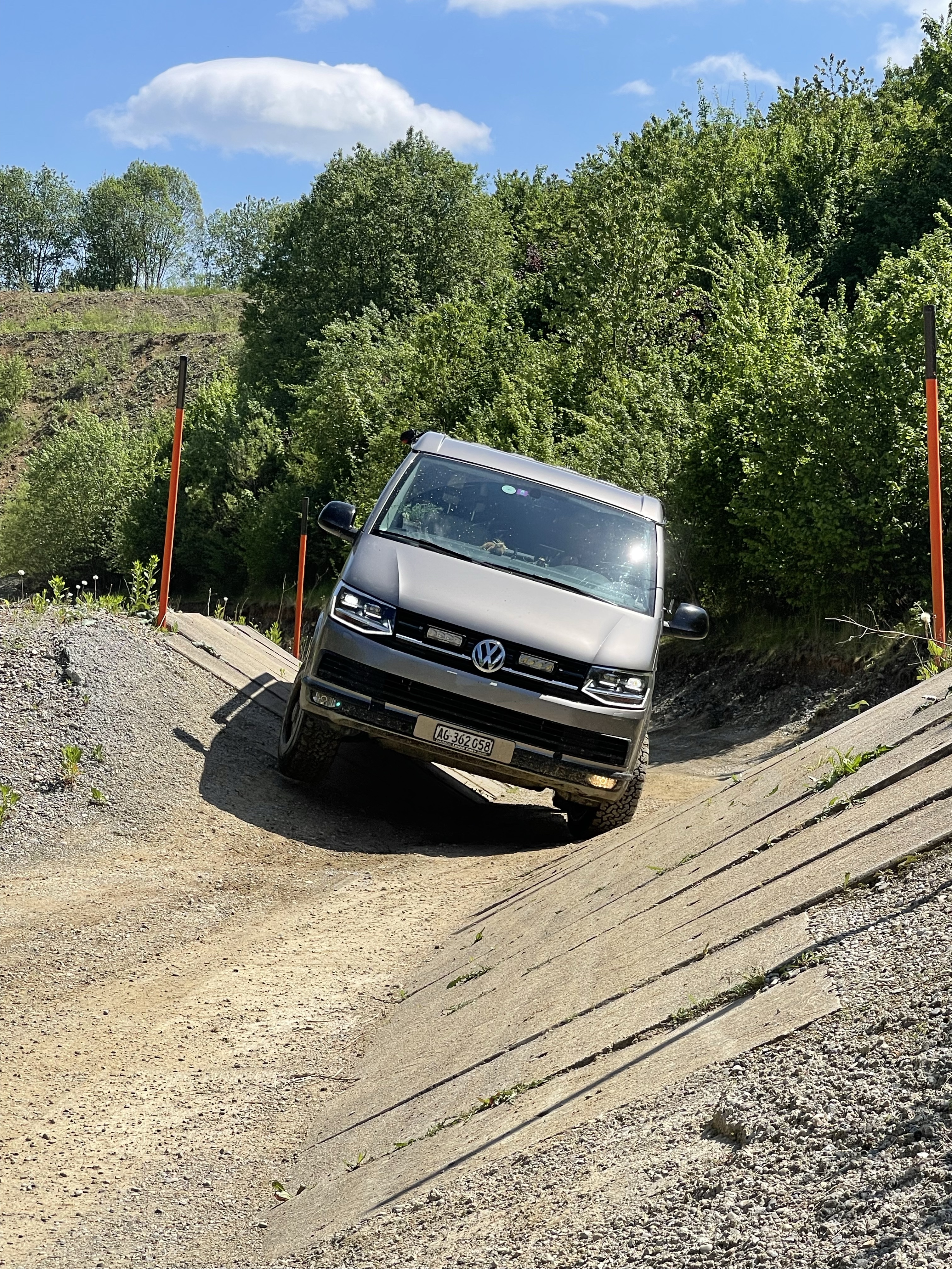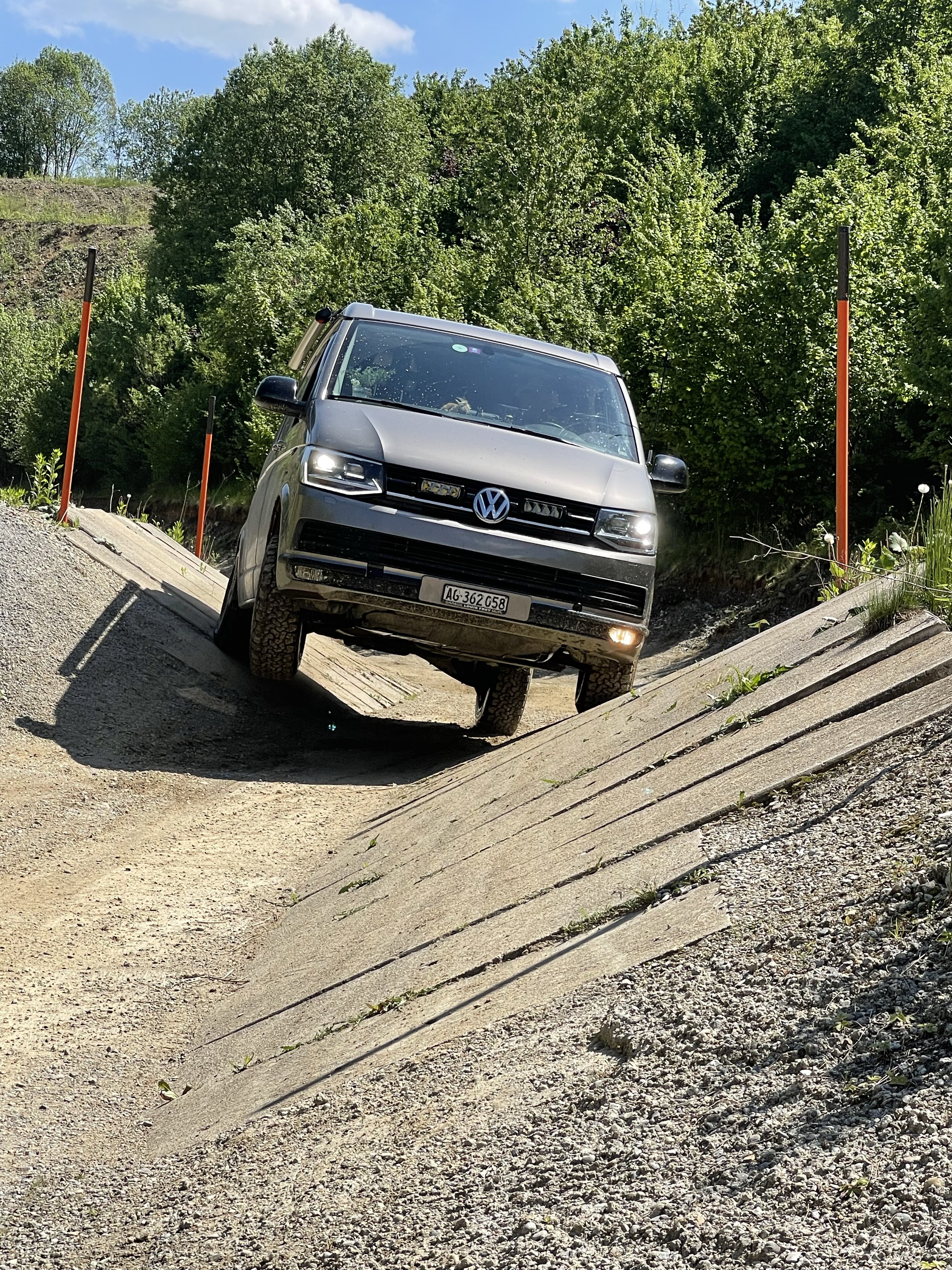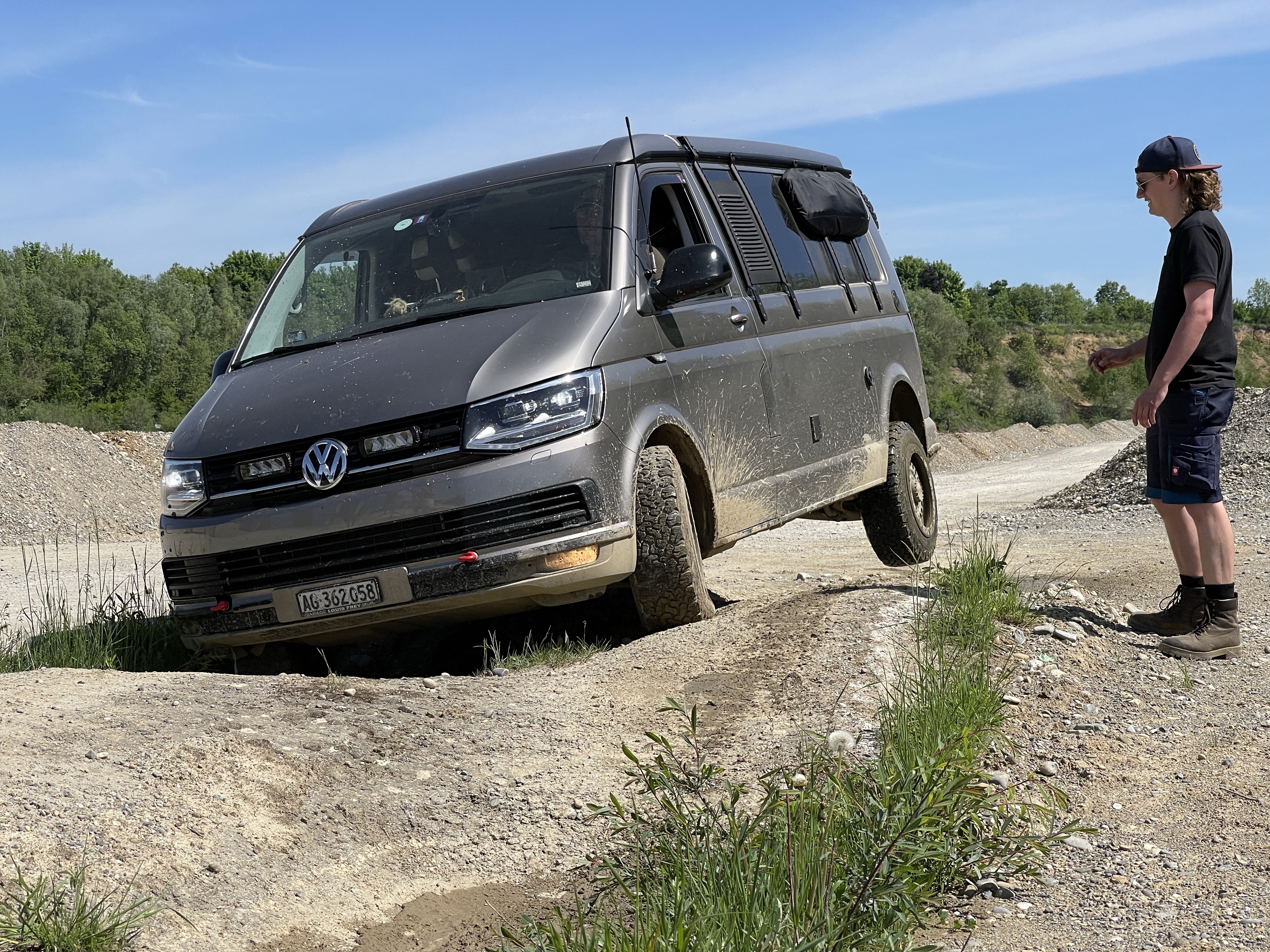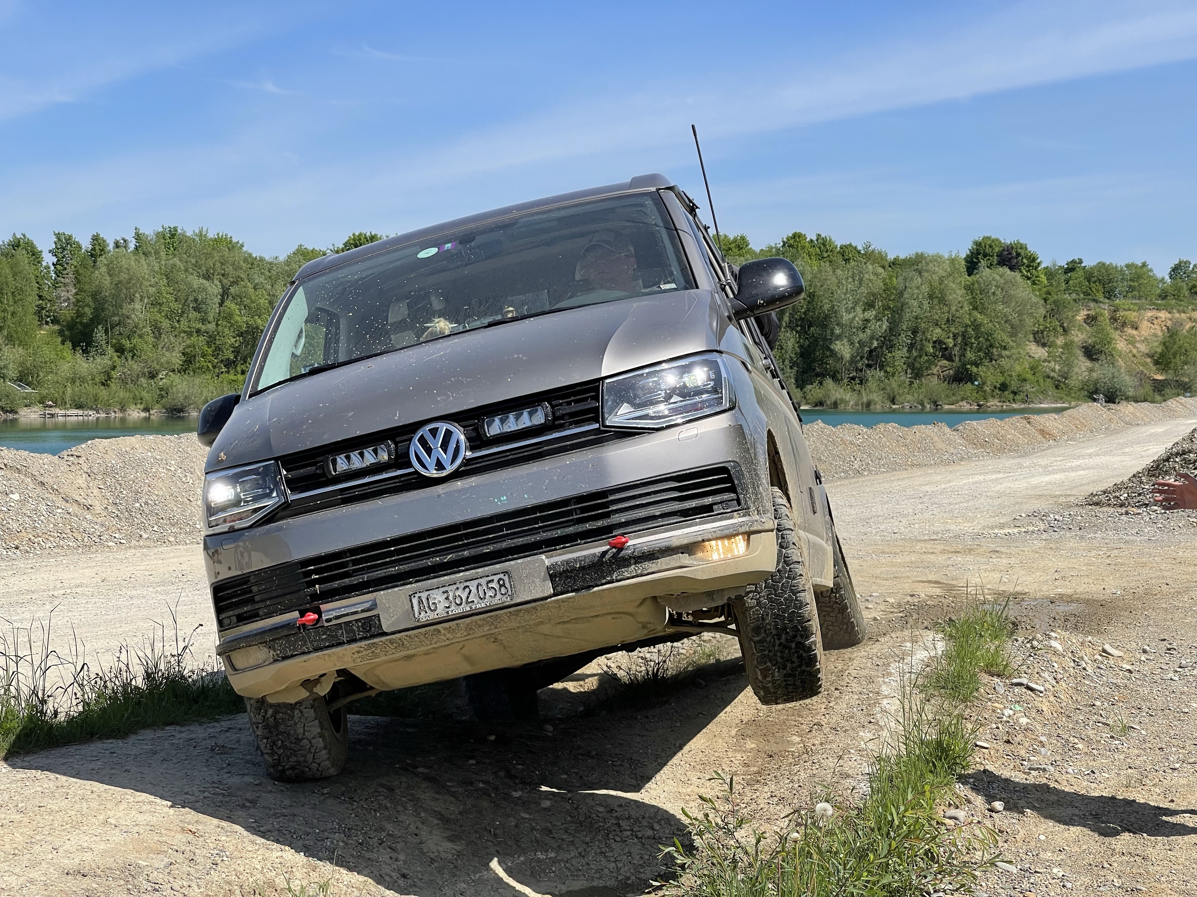 Über Stock und Stein, durch kleine Bäche oder Schlamm und Sumpf, Schräglage und Bumps, steile Schotterpisten rauf und runter… geht das überhaupt mit unserem langen Luxus-Bulli? Wir wollen es wissen und haben uns für einen Trainingskurs in einer süddeutschen Kiesgrube angemeldet. Nur VWs, unter fachkundiger Leitung von Capricorn Trucks und Red-Ants-offroad.