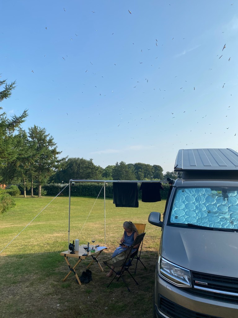 Ein kurzes Wort zum Camping: Dieser hier ist nur zum Übernachten. Das ist okay. Und so werden wir die Zeltplätze auch weiterhin benützen. Aber „Kuschelcamping“ mögen wir wirklich nicht gern. Da wo man den Nachbarn hört und sieht und fast schon spürt. Ist nicht unseres! Leider gibt es in Dänemark unseres Wissens keine Alternative, „wild campen“ ist nicht erlaubt und so wie mit „Hinterland“ oder „Place to bee“… wo man einzeln stehen könnte (auch gerne gegen Geld) haben wir nichts gefunden. Campingplätze haben den Vorteil, dass man entsorgen und duschen kann. Das ist aber auch der einzige. WC haben wir selber dabei, Strom ist nett, aber nicht zwingend nötig, und Wasser kann man auch an einem Brunnen auffüllen.