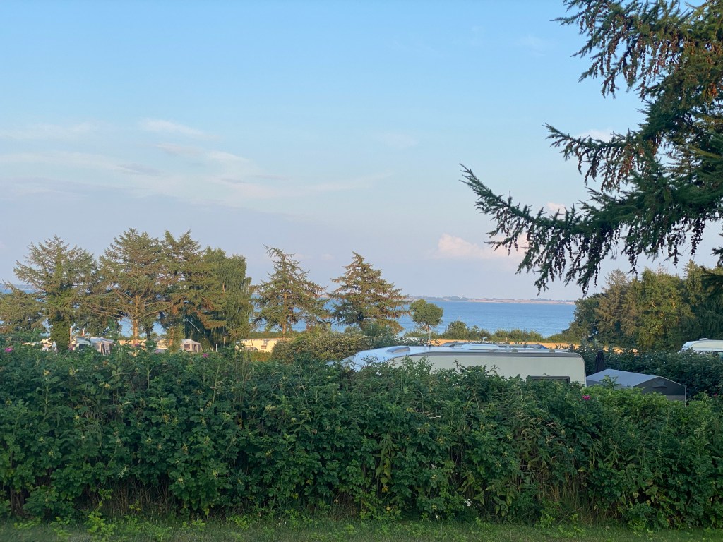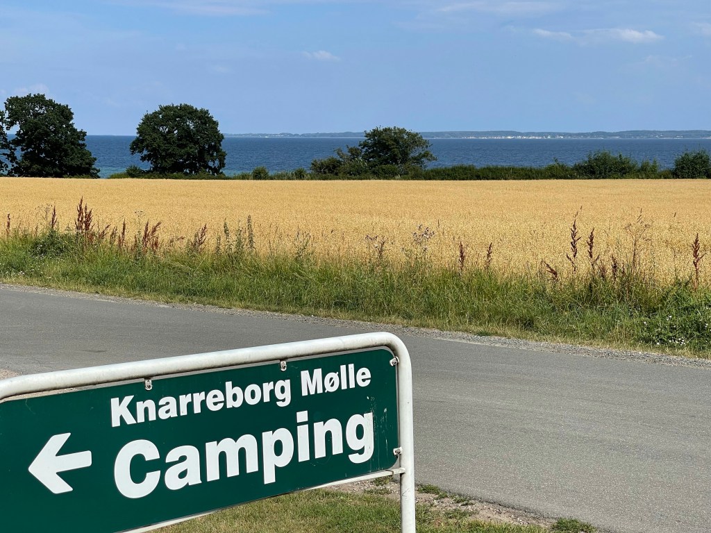 Danach suchen wir einen Campingplatz, der zu uns passt. Will heissen: Bitte so viel Privatsphäre wie möglich und saubere Duschen. Ich hatte vor ein paar Tagen schon mal eine Vor-Auswahl getroffen. Die fahren wir jetzt der Reihe nach ab. Der erste ist es nicht, der zweite passt: Knarreborg Mølle Camping vis-à-vis der Insel Langeland.