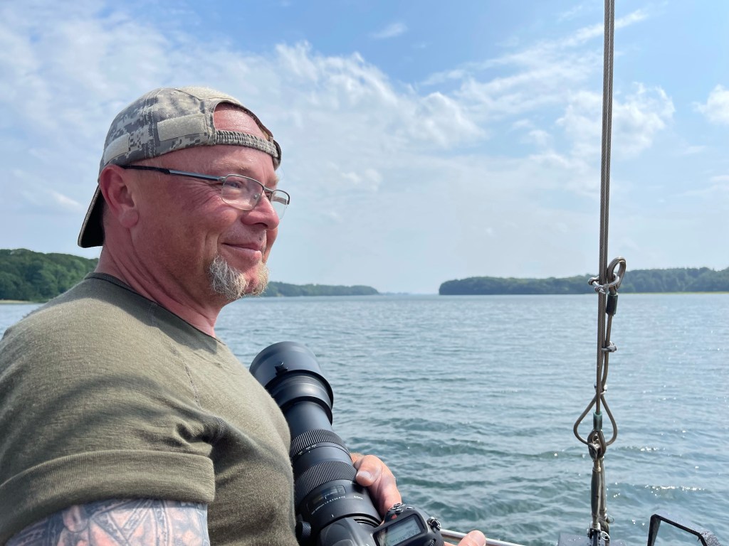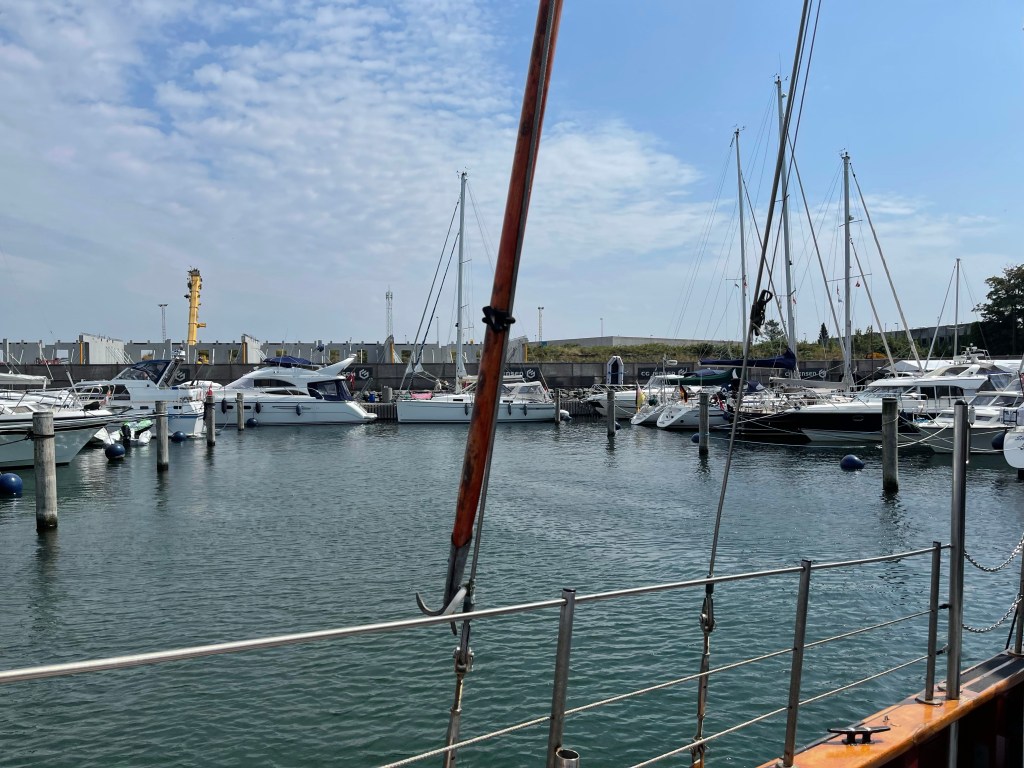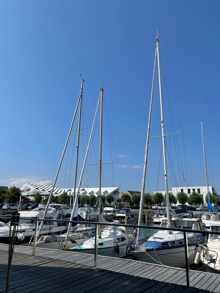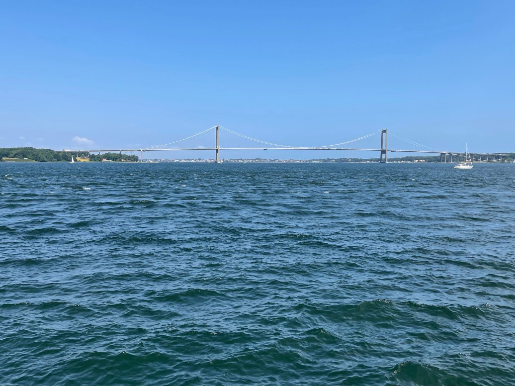 Gegen Mittag wird das Wetter etwas besser und hoffnungsvoll fahren wir nach Middelfart. Es wird immer sonniger und wärmer. Ich hab mich viel zu warm angezogen 😅 pünktlich tuckern wir los, 12 Leute sind auf dem Boot, Belgier und Dänen und 4 weitere Schweizer. Das Wetter ist prächtig, kaum Wind, 25 Grad. Nach etwa 3/4 Stunden sehen wir tatsächlich ein paar Mal eine Rückenflosse oder auch zwei, aber alles geht so unglaublich schnell – keine Chance mit dem Handy. Andy hat es hoffentlich mit der guten Kamera und dem Riesen-Objektiv geschafft. Er fotografiert von ganz zu vorderst und es gibt ja auch noch herrliche Landschaft, Vögel und Segelschiffe zum verewigen. Dann halt keine Schweinswale (sind ähnlich wie Delfine) aber Schiffli fahren ist sowieso unseres und deshalb steigen wir nach 2 Stunden voll happy vom Boot ☺️