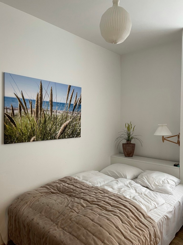 Am nächsten Morgen ist das Wikingermuseum in Haithabu (Busdorf, nähe der Stadt Schleswig an der Ostküste) auf dem Programm. Nach einem typisch deutschen Frühstück in Odin’s Biergarten laufen wir zuerst zu den nachgebauten Wikinger-Hütten raus… eine gute Entscheidung – es wird immer heisser. Das Museum ist interessant, aber etwas voll und eher unstrukturiert. Wir machen lieber Pause draussen unter den Bäumen und fahren danach zurück und weiter bis nach Husum. Dort verbringen wir noch ein paar Stunden am Wiesenstrand „Dockkoog“, es hat zwar viele Leute, aber im Strandkorb kann man das einigermassen ausblenden und die Sonne und den Wind trotzdem geniessen.