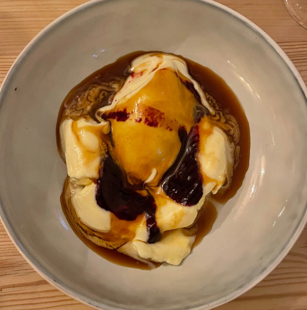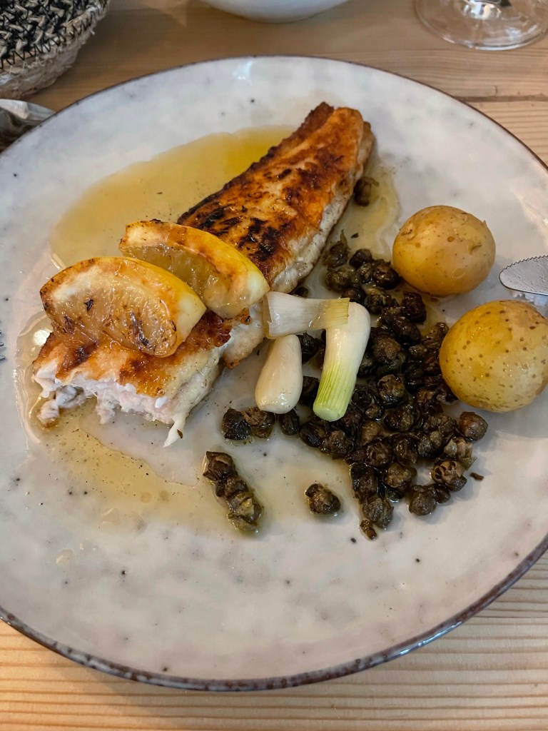 Gebratene Kapern gabs zu meinem Fisch – sehr coole Idee! Aber das beste war eindeutig das Dessert: hausgemachte, cremige Vanilleglacé mit schwarzen Johannisbeeren und das alles mit einer heissen Sauce aus Butter, Eigelb und Zucker übergossen… besser als jedes Zabaiione!😍