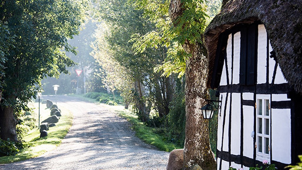 Das Hotel heisst Gammel Brydegaard. Mit gammelig hat das nichts zu tun 😉 gammel heisst „alt“. Es liegt versteckt am Dorfrand in Spaziergang-Distanz vom Meer, an der engsten Stelle der Halbinsel Helnaes auf Fynn.