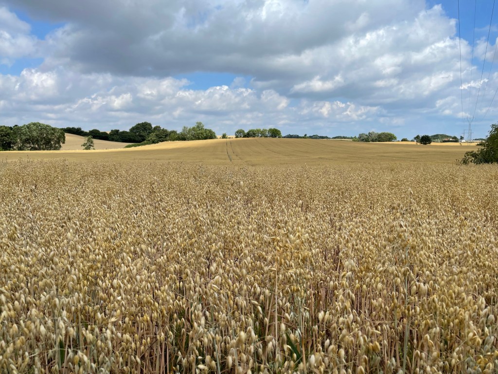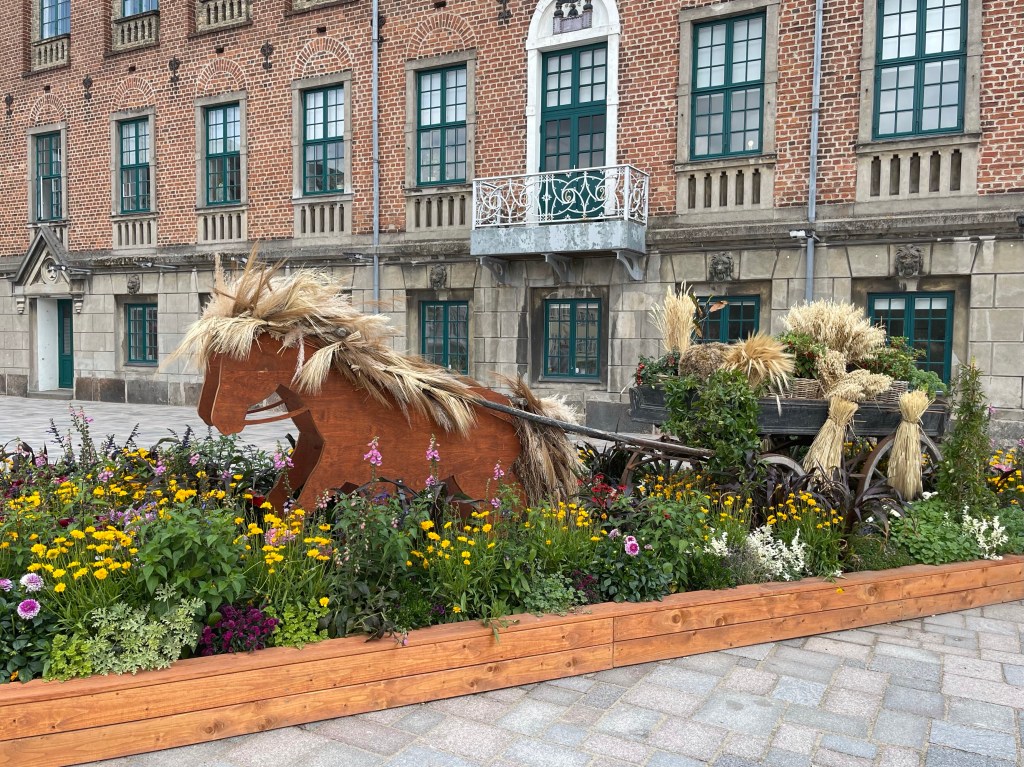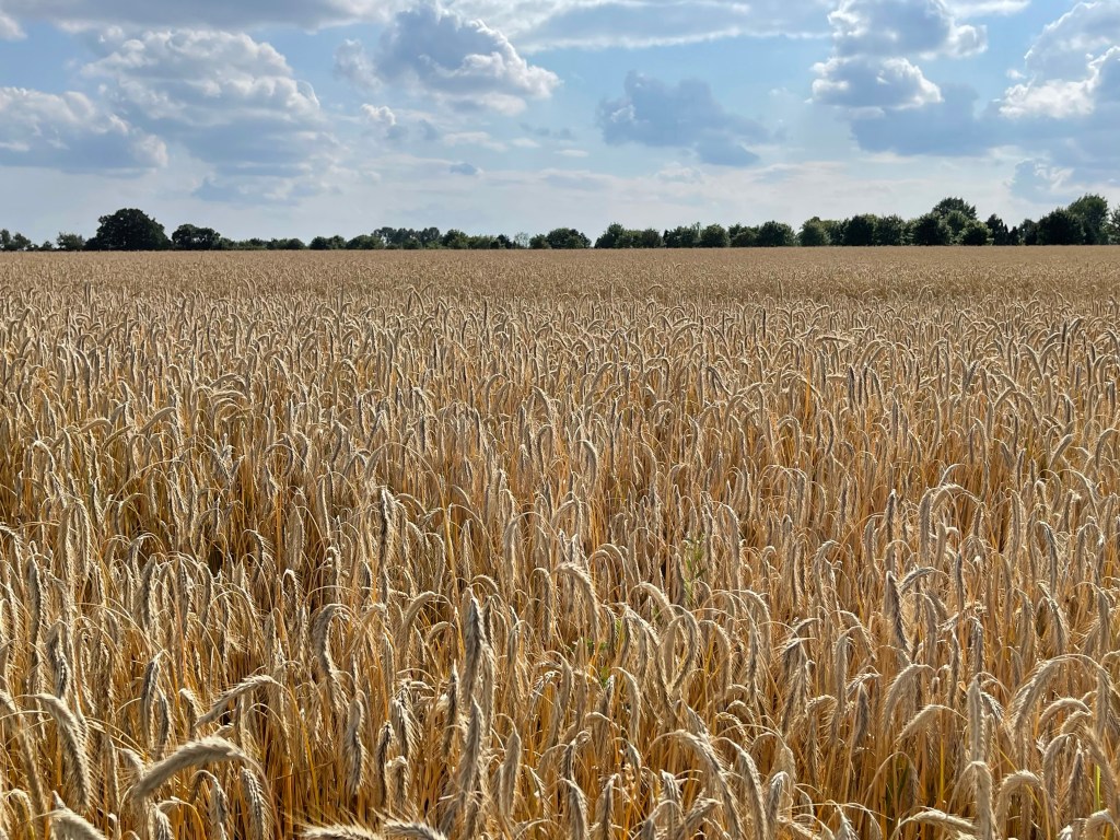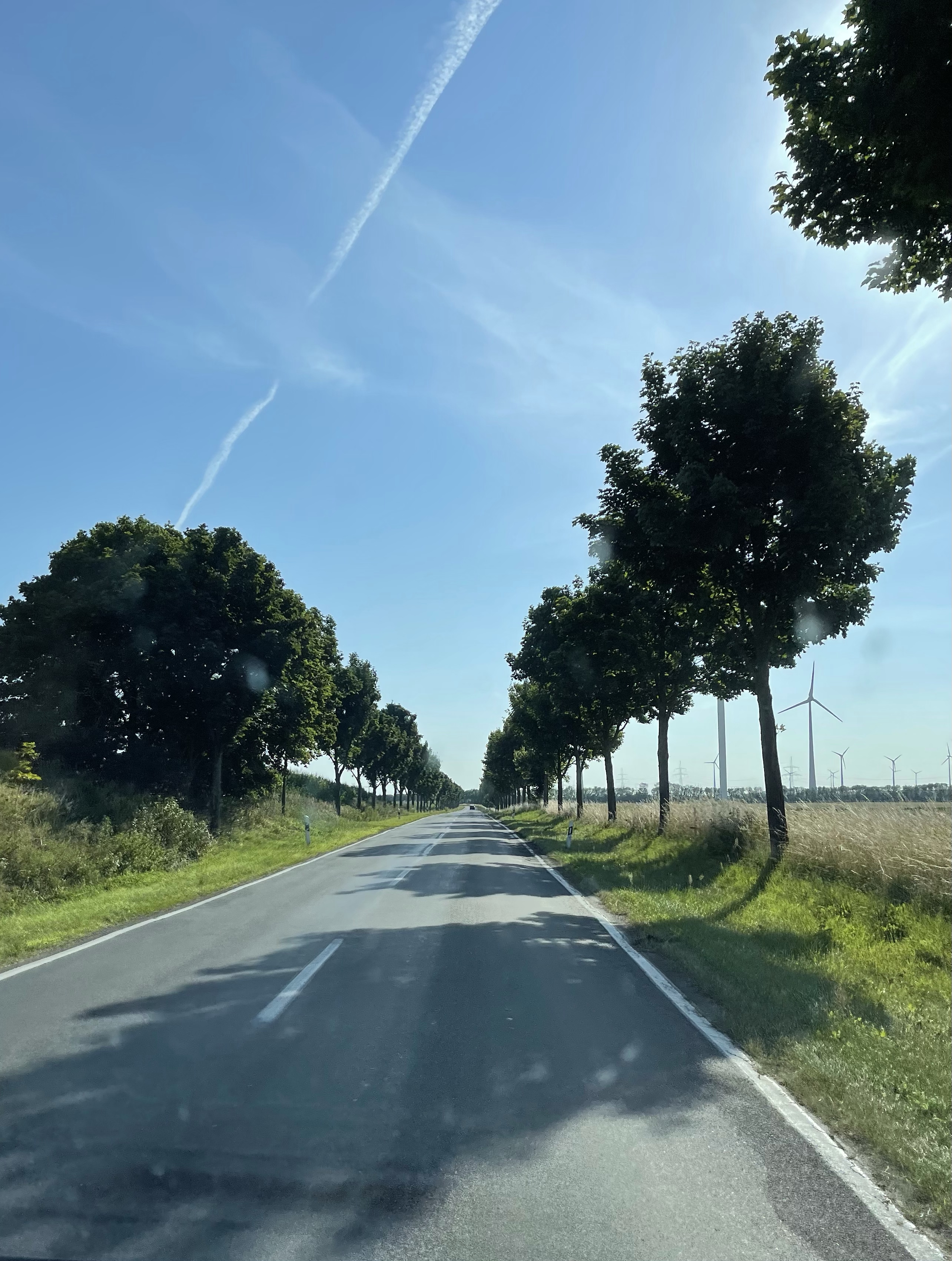 Und auch der Weg dorthin war wirklich schön. Die Landschaft, immer wieder ein paar Meter unter dem Meeresspiegel oder auch (maximal 20-30) darüber… sehr viel Getreide, goldgelb leuchtend, kleine Wälder, auch Mais und Heu, die Häuser der sehr kleinen Dörfer mit ihren roten Backsteinen hübsch und herzig, die schmucken kleinen Gärten (viele Stockrosen🌺💚)… die Strassen gradeaus, ohne Drängler und nur selten viel Verkehr …. Es ist sehr gemütlich und vergnüglich hier unterwegs zu sein!